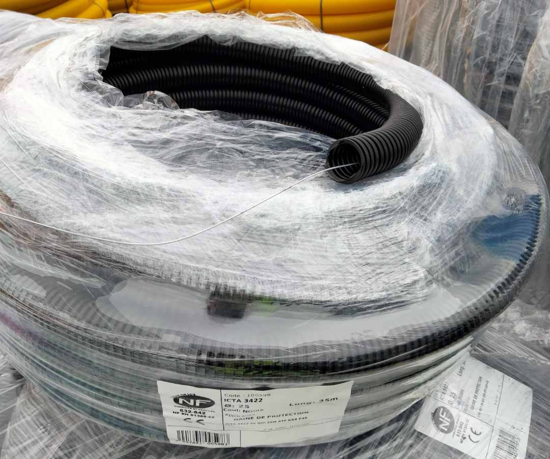 GAINE ICTA 3422 Couleur noire diamètre 25mm Longueur 25m avec tire fil
