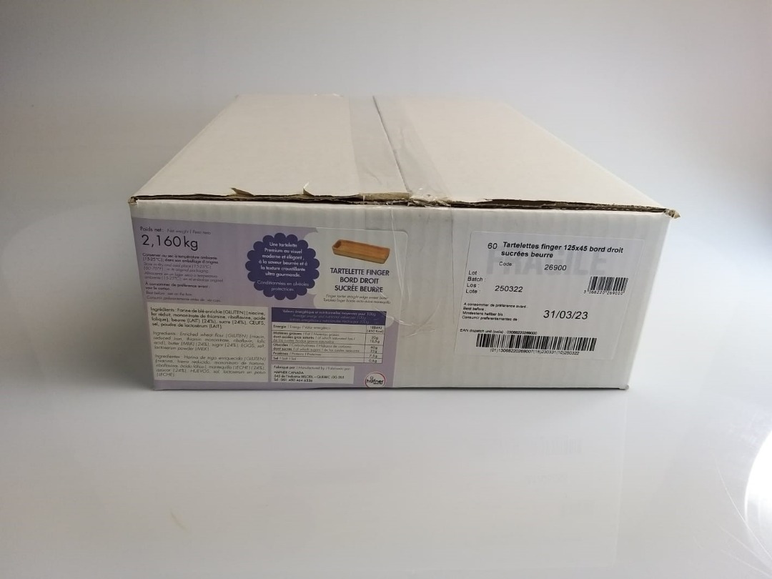 - Carton de 60 Tartelettes finger 125x45 bord droit sucrées beurre
