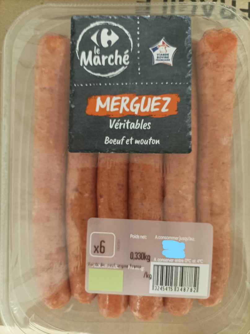 - Merguez véritables bœuf et mouton - Le Marché Carrefour - Barquette de 6 merguez