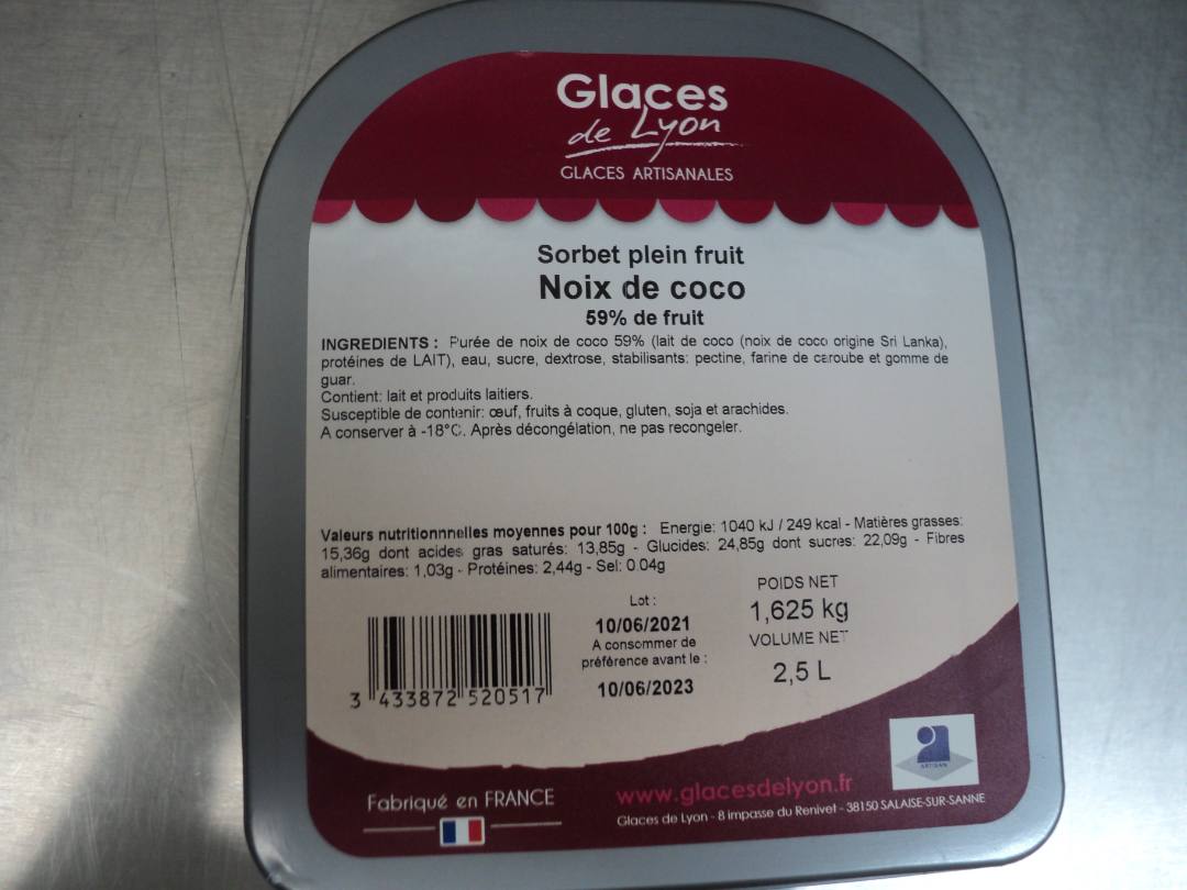 - Sorbet plein fruit Noix de coco 2,5L / 1,625 kg