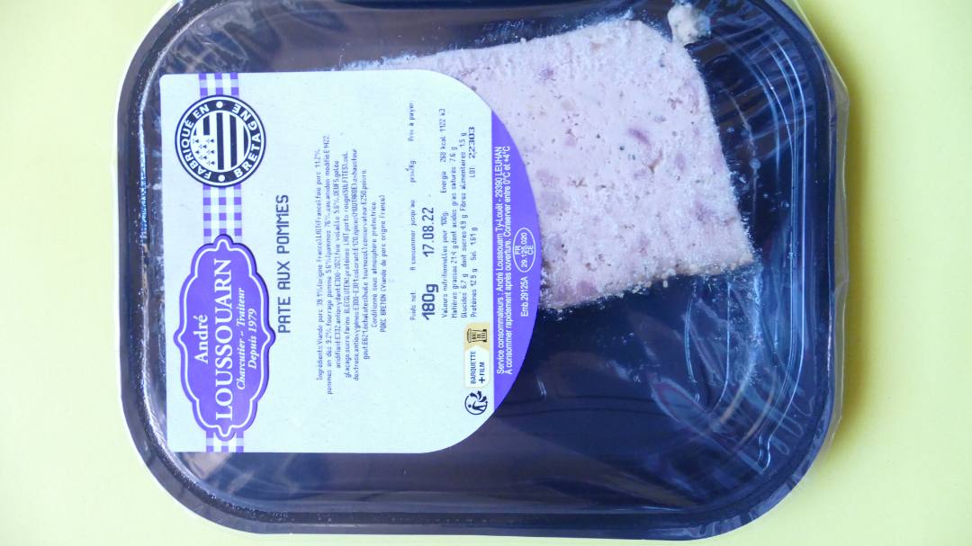 - PATE AUX POMMES AU RAYON COUPE : TERRINE GRES NOIRE DE 2.2 KG ENVIRON PATE AUX POMMES AU RAYON LIBRE-SERVICE : 1 TRANCHE CONDITIONNEE EN BARQUETTE NOIRE SOUS ATMOSPHERE PROTECTRICE