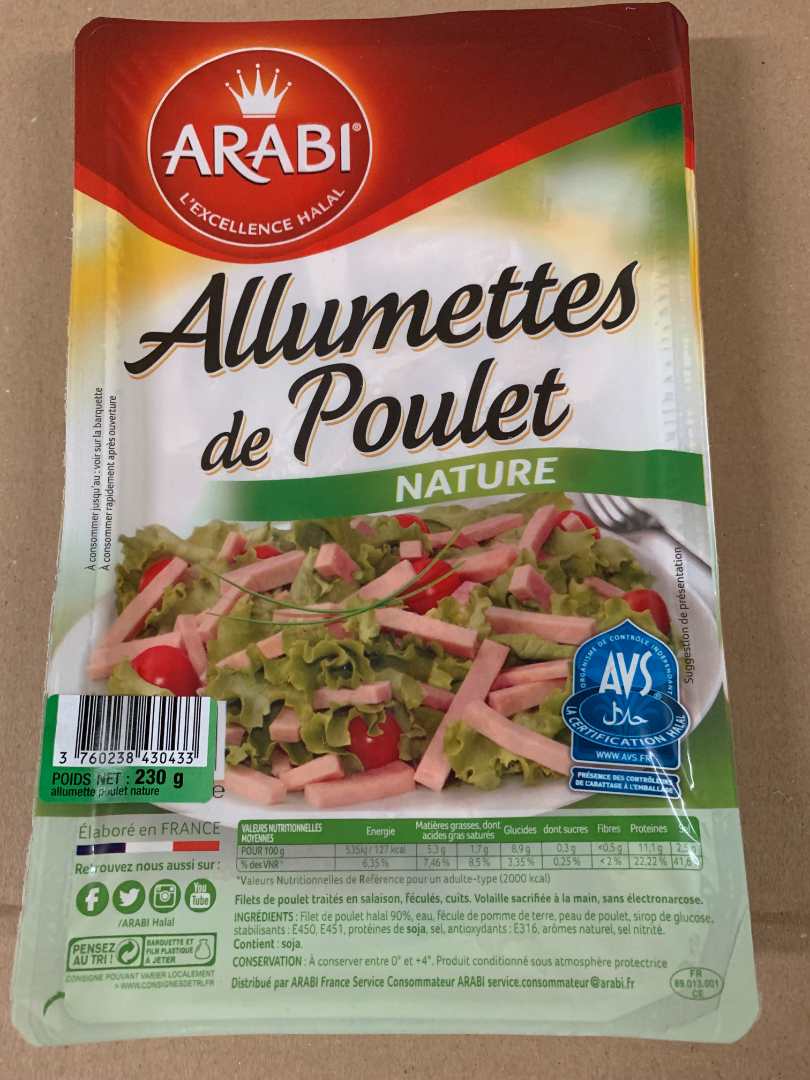 - LA SOCIETE SAS LAGUILLAUMIE RAPPELLE LES BARQUETTES ALLUMETTES DE POULET 230 G DE LA MARQUE ARABI Les barquettes allumettes de poulet ont été vendues au rayon libre-service sous la marque « Arabi », - dénomination : ALLUMETTES DE POULET - numéro d’agrément : FR 89 013 001 CE - numéro de lots : L2207005