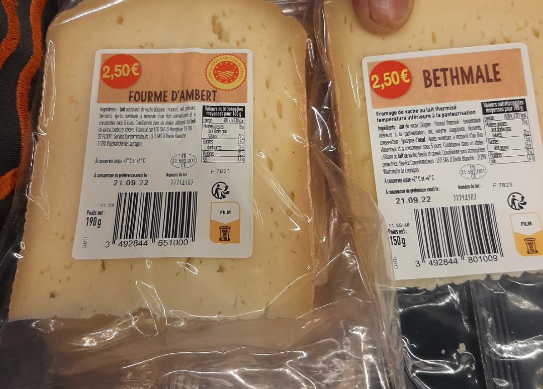 - BETHMALE 2,50€ 150 g étiqueté Fourme d'Ambert 2,50€ 190 g