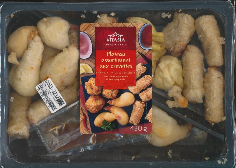 - Plateau assortiment constitué de nems aux crevettes, de beignets de crevettes et de raviolis aux crevettes