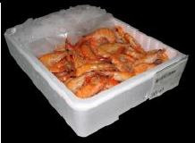 - Crevettes entières cuites réfrigérées en boite polystyrène de 2kg, calibre 30/40