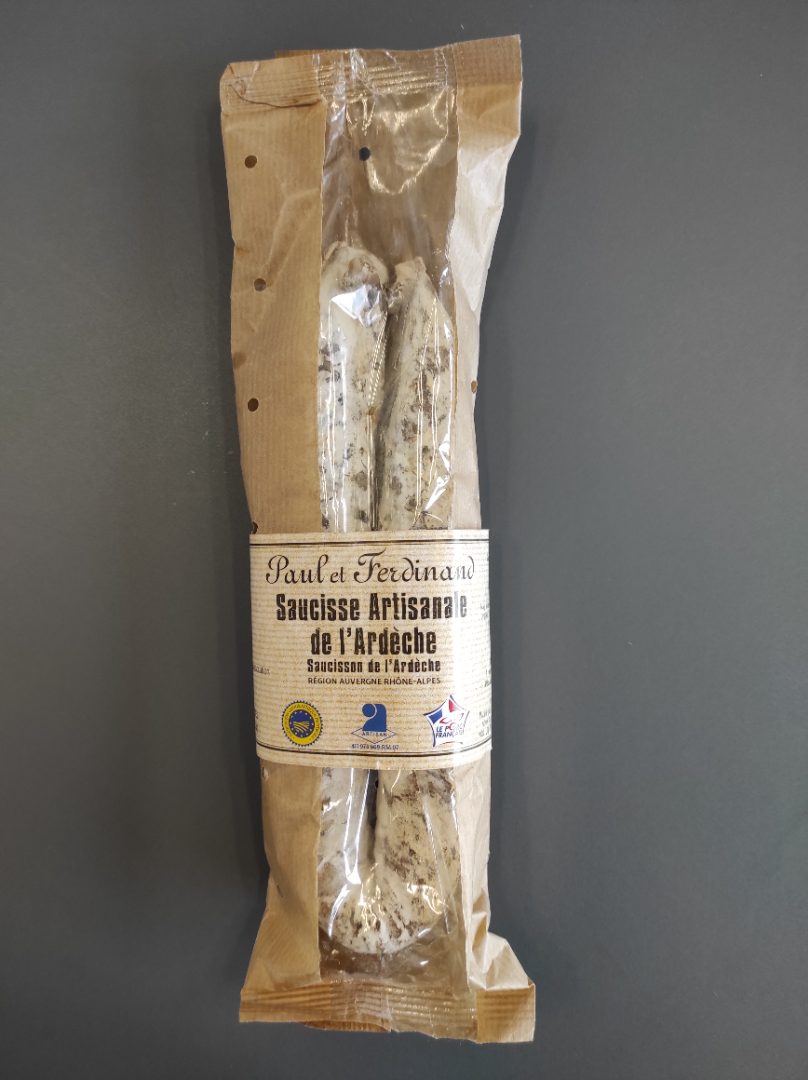 - Saucisse sèche emballée sous sachet kraft de 250 g