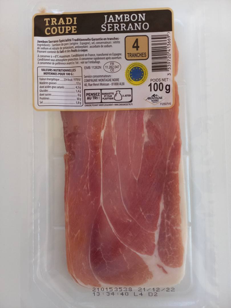 JAMBON SERRANO 4TR 100 G TRADICOUPE