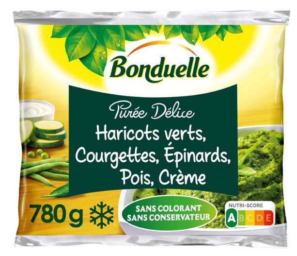 - Purée délice : Haricots verts, courgettes, épinards, pois, crème surgelée 780g