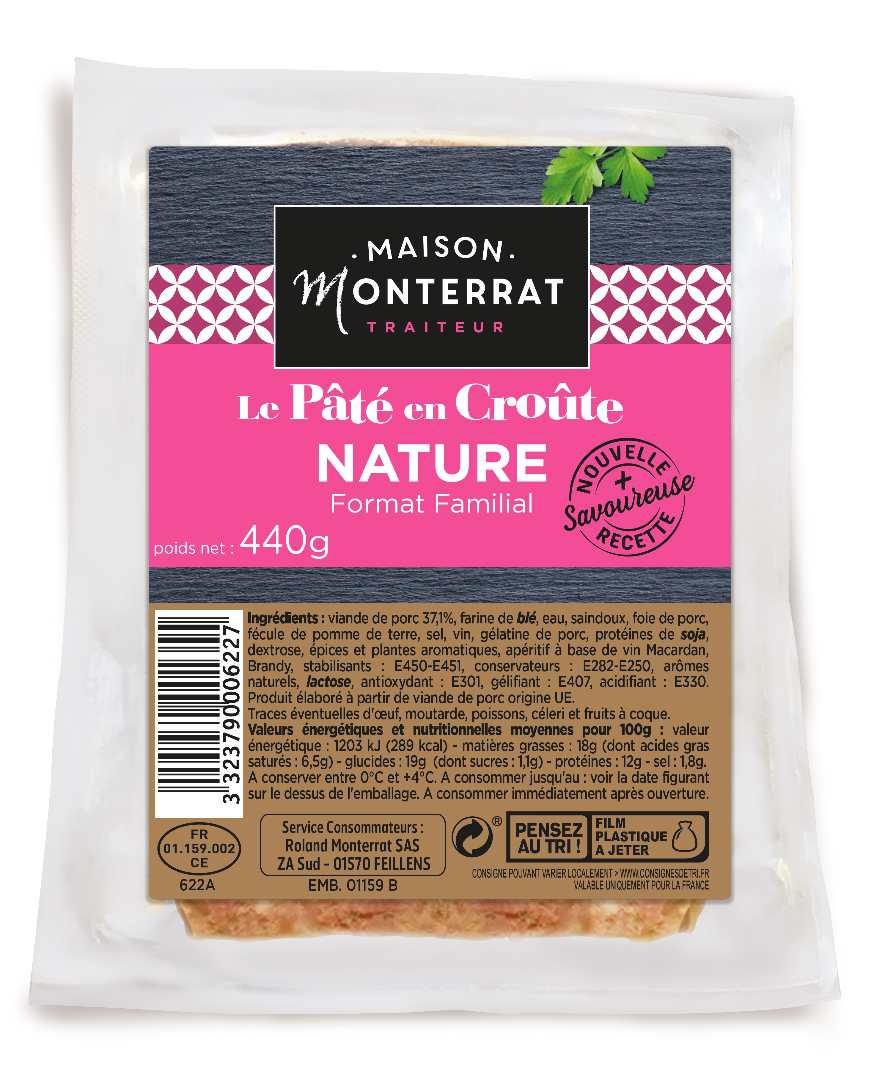 - Pâtés en croûte blocs 10 tranches 440g emballés sous vide Pâtés en croûte 2 tranches 190g emballés sous vide Pâtés en croûte 2 tranches 2x90g emballés sous vide