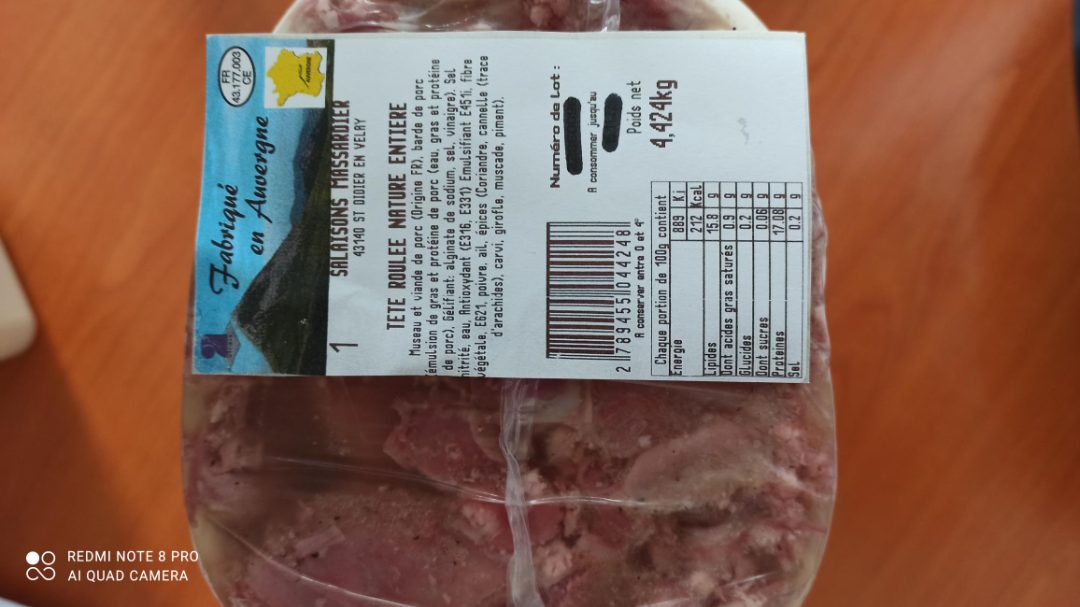 - TETE ROULEE BLOC : lot 22620072/ 22650078 DLC 19/10/22 TETE PERSILLEE BLOC : lot 22620080 DLC 16/10/22 TETE ROULEE NATURE ENTIERE : lot 22590056 DLC 19/10/22 1/2 TETE ROULEE NATURE : lot 22590055 DLC 19/10/22