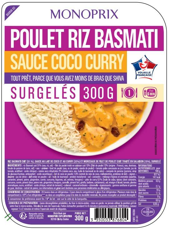 - POULET ET RIZ BASMATI SAUCE COCO CURRY SURGELES
