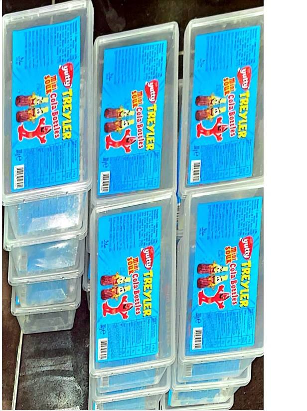 - bonbons gélifiés en forme de mini bouteilles au cola et acidulé