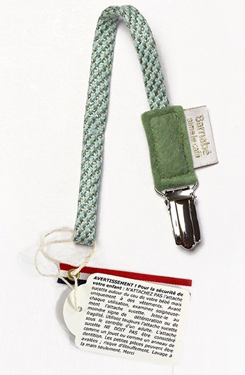 - Attache sucette ruban tressé, feutrine et pince bretelle.