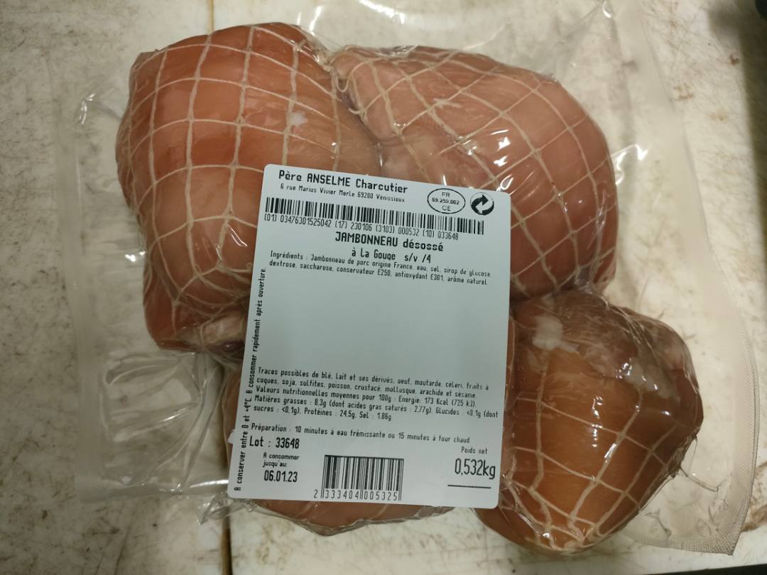 - JAMBONNEAU désossé à la Gouge s/v /4 sous vide par 4 jambonneaux, poche destinée au rayon coupe