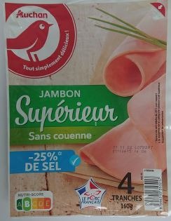 - AUCHAN JAMBON SUPERIEUR DECOUENNE DEGRAISSE 4 TRANCHES