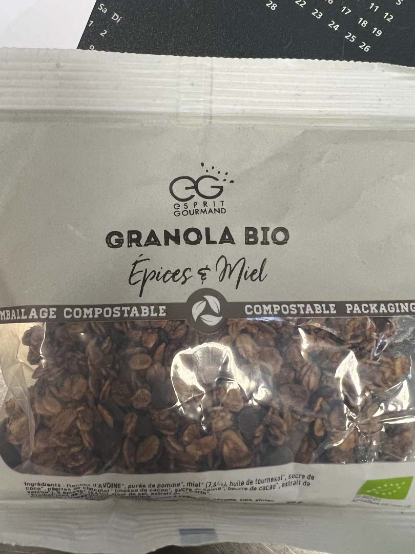 - Granola miel épices bio en Sachets de 50 g, 500 g.