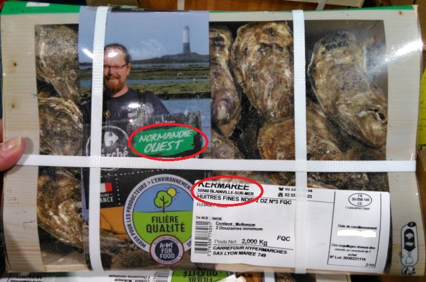 - "Kermarée" mentionné sur l'étiquette sanitaire des bourriches.
