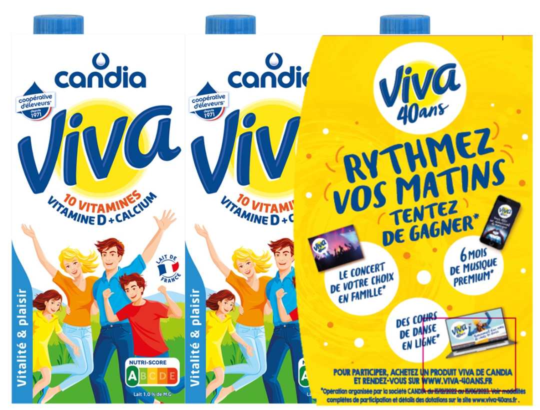 - présence d'un film avec un jeu pour les 40 ans de la marque Candia Viva