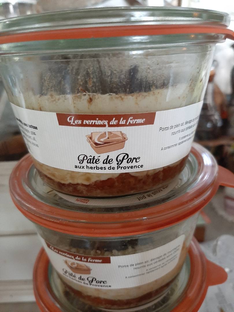 pâtés de porc aux herbes pots verre 220g "les verrines de la ferme" rillettes de porc au genièvre pot verre 230g" les verrines de la ferme" fromage de tête pots verre 285 g "les verrines de la ferme"