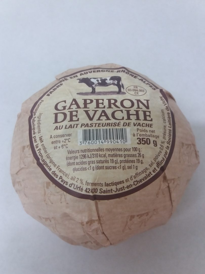 - GAPERON DE VACHE 350G lait pasteurisé de vache